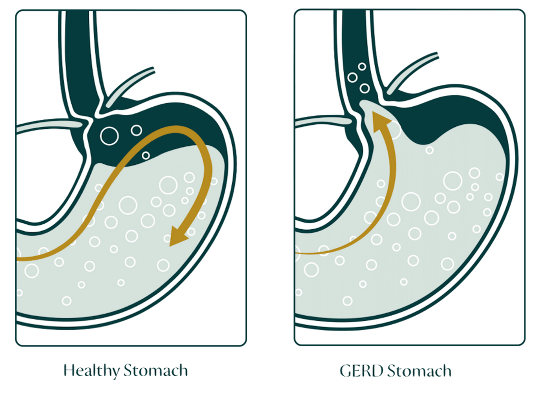 Gastroesophageal reflux disease (GERD), commonly known as acid reflux or heartburn, occurs when stomach acid flows up into your delicate esophagus. This can be due to overproduction of stomach acid or relaxation of what’s called the “lower esophageal sphincter", which is a small circular muscle between your stomach and esophagus.